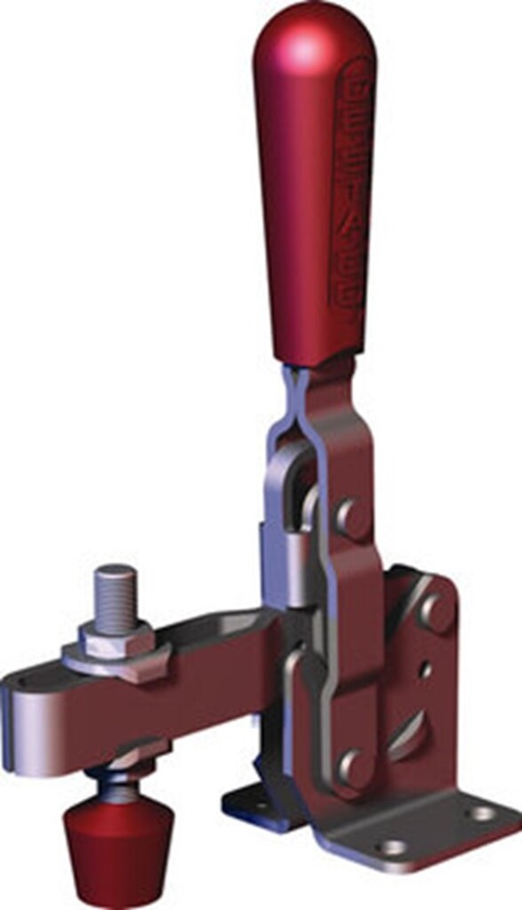 Handmatige klem met verticale handgreeppositie in klempositie. Eenvoudige bediening. Snelle klembeweging. Voor middelzware klemwerkzaamheden. Handbediende snelspanner voor klemmen, spannen en sluiten.