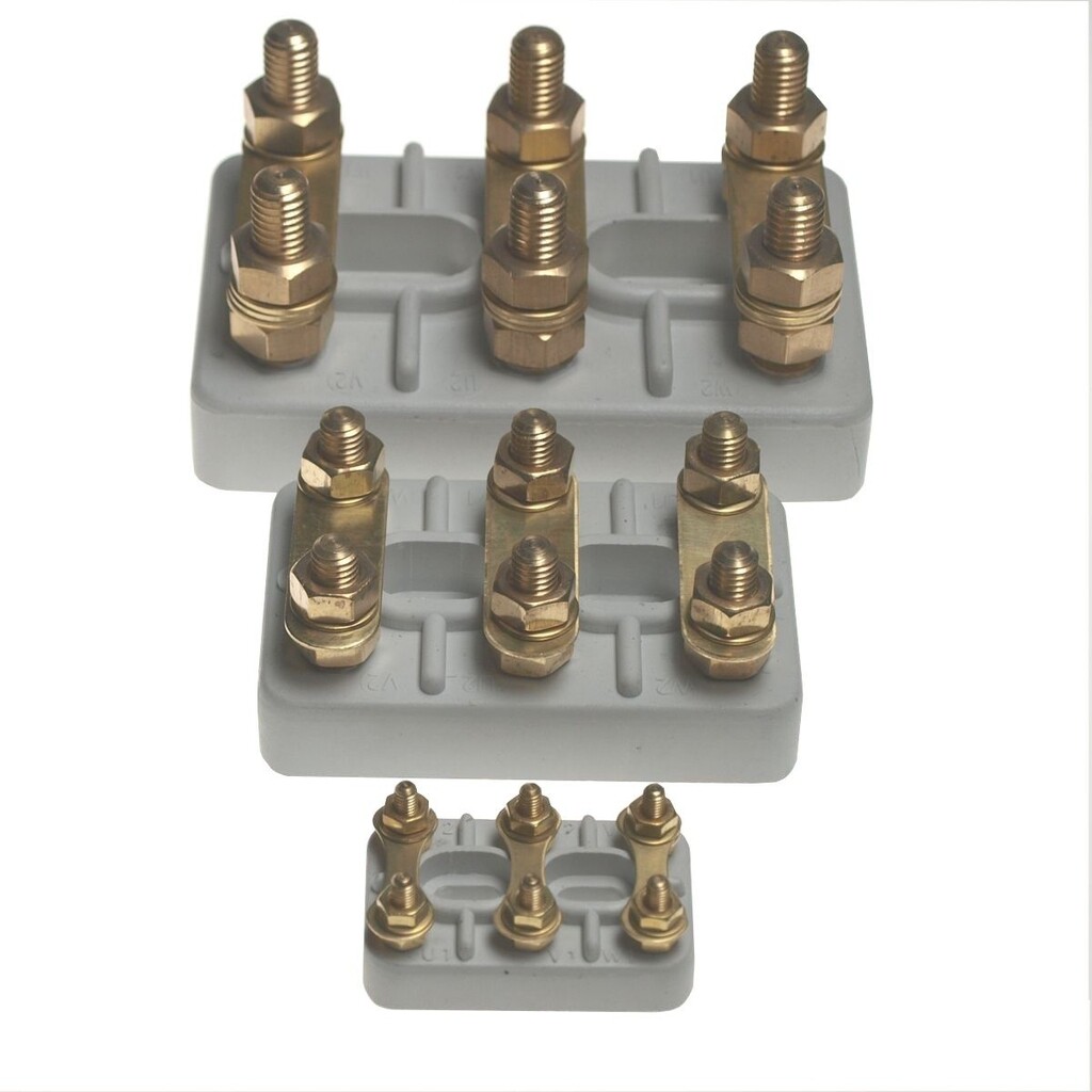 Deze motoraansluitblokken worden compleet gemonteerd geleverd, dus voorzien van moeren, ringen en verbindingsstrippen.